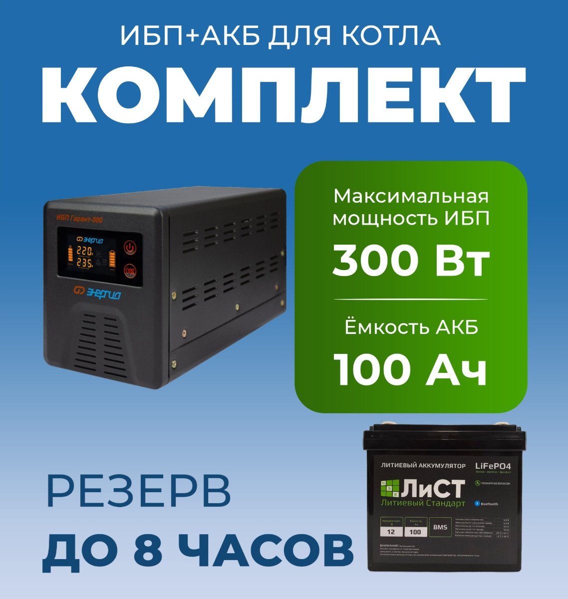 ИБП Энергия Гарант- 500 с аккумулятором ЛиСТ 100Ач - стабильное тепло на срок до 8 часов.
